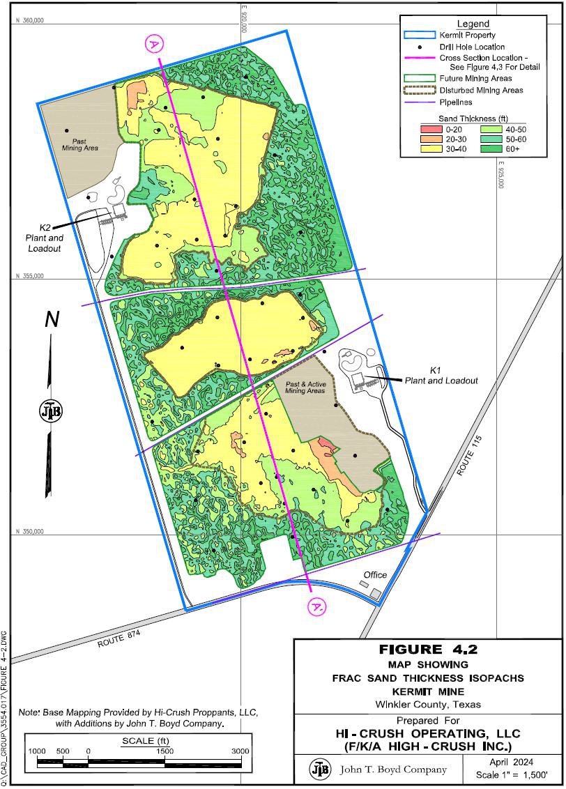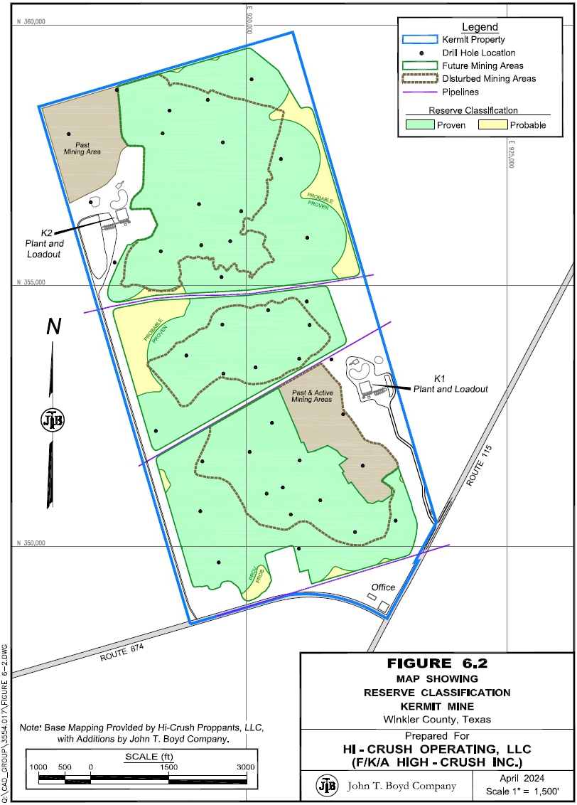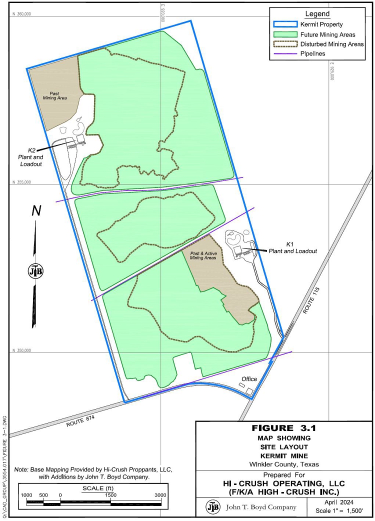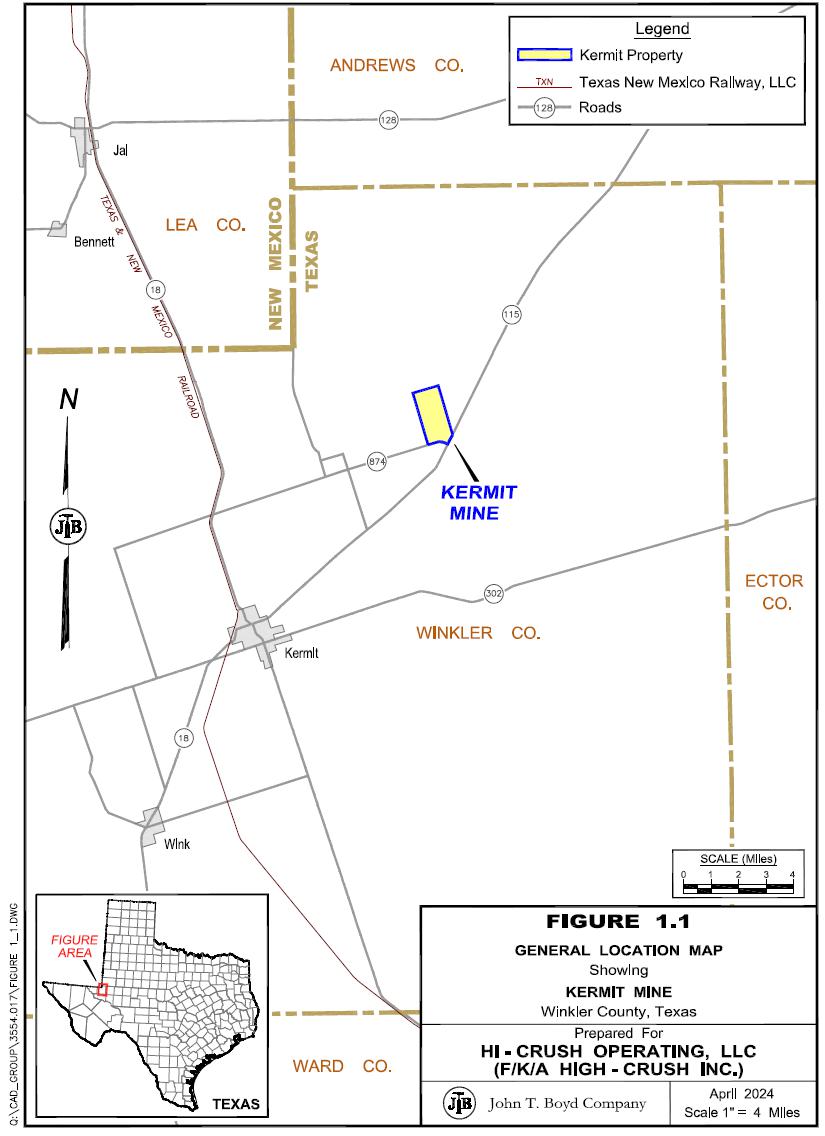 The John T. Boyd Company (BOYD) was retained by Hi-Crush Operating, LLC (f/k/a Hi-Crush Inc. and hereinafter “Hi-Crush”) to independently prepare estimates of mineral resources and mineral reserves—hereafter referred to as frac sand resources and frac sand reserves, respectively—for the Kermit Mine (or “Kermit”) as of December 31, 2023.